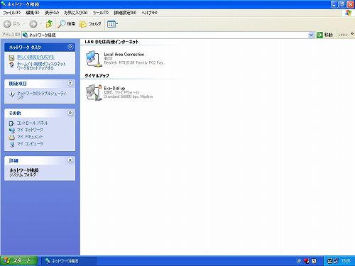 確認できたら、左側の「ネットワーク タスク」より「新しい接続を作成する」をクリックします。