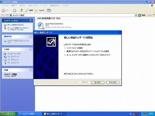 B「新しい接続ウィザード」が開くので、「次へ」をクリックします