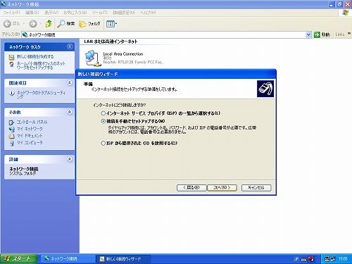 D「準備」では「接続を手動でセットアップする」を選択し、「次へ」をクリック