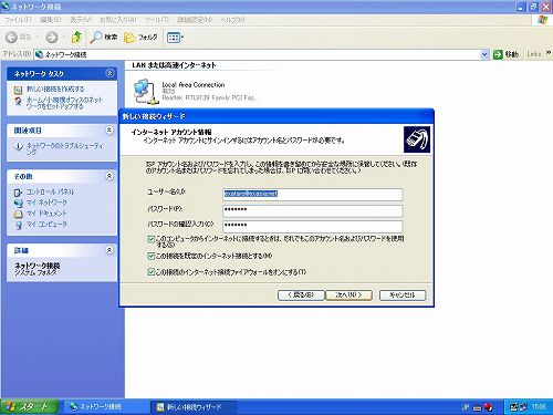 E「インターネット接続」では「ユーザー名とパスワードが必要な広帯域接続を