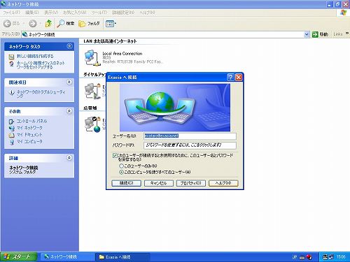 Windows XPはエクサのブロードバンド・サービスで必要なPPPoEプロトコルを標準でサポートしています。